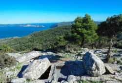 Skopelos Sights & Monuments - The historic "Trunks" (Sentoukia) serve as extraordinary ancient tombs, situated on Karya Mountain, just above St. Eustatius Monastery in Skopelos, Greece. As per legends and folklore, the ancient Sentoukia in Skopelos holds several secrets and treasures from the bygone era. Visitors can revel in stunning views of Greece's Alonissos, Evia, Skiathos, and Pelion while exploring this remarkable location. Plan a visit to the exquisite Ancient Sentoukia in Skopelos, Greece, to experience its glory firsthand.