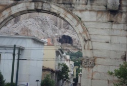 Athens Sights & Monuments - The Arch of Hadrian in Athens, Greece is an impressive example of ancient Greek architecture. This iconic structure, constructed of white Pentelic marble, can be found on the Athens road that leads from the city center to the Temple of Olympian Zeus. The arch is made up of marble slabs that are expertly connected using brackets, eliminating the need for cement. Its design features three rectangular sections with Corinthian columns and pilasters. On one side of the arch, visitors can read the inscription "This is Athens, a city of Theseus," while on the other side, the inscription reads "It is not the city of Theseus, but Adrian."