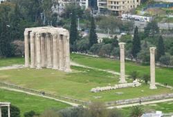 Athens Sights & Monuments - The Temple of Olympian Zeus in Athens, Greece, is a monumental temple constructed by Hadrian during the second century A.D. This awe-inspiring structure was once the largest in Greece and remains an impressive sight for modern visitors. The temple measures an incredible 110 meters in length and over 40 meters in width, boasting a staggering 104 Corinthian-style columns that tower at a height of 17 meters and weigh more than 360 tonnes. Within the temple walls, visitors can admire a magnificent gold and ivory statue of Hadrian, along with a monument dedicated to the emperor by the Athenians. Sculptures adorn the sacred shrine, making it a true masterpiece of ancient Greek architecture. Though the temple was abandoned during Byzantine times, it still stands as a remarkable attraction, and the site has even hosted concerts in recent years. Come marvel at the grandeur of the Temple of Olympian Zeus and experience the splendor of ancient Greece.