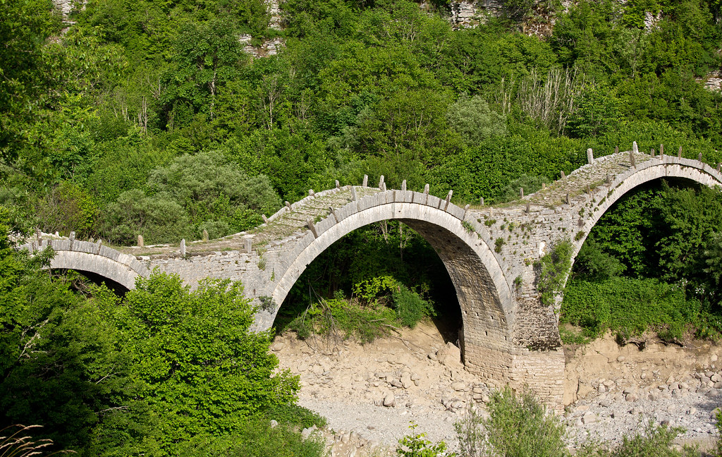 Zagori Monuments - The Zagori region in Epirus, Greece boasts over 160 ancient arched bridges, offering visitors access to the area's stunning rivers and streams. Built by skilled local craftsmen from local stone in the 18th and 19th centuries, many of these bridges still stand today. These impressive structures often feature traditional Greek "kamares" with one to three arches. Exploring the breathtaking highlands and taking in the magnificent stone bridges, such as those found at Kalogeriko, Klidonia, Kokkori, Milos, Missios, Nonulos, Papastathis, Politsa, Tsipiani, and various other locations is a must-do for visitors. Discover the beauty of Zagori Bridges in Epirus, Greece.