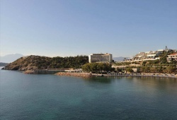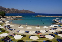 Agios Nikolaos Beaches - Mirabello Beach in Agios Nikolaos, Crete is a picturesque location situated just 2 km north of the town. One of the main attractions of this area is the historic Mirabello Hotel, which is located right in front of two stunning bays that are home to two charming beaches. The beach next to the hotel features a small marina and platforms. Both beaches are expertly organized, with amenities such as showers, a bar, deck chairs, and parasols. The beaches are separated by a small (artificial) peninsula that is surrounded by lush trees. It's important to note that while the beach is often referred to as Havania Beach North, its true name is Mirabello Beach.