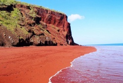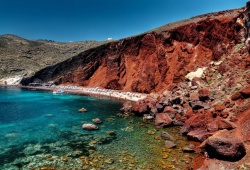 Santorini Beaches - The Red Beach in Santorini, Greece is a must-visit destination for beach lovers. Boasting stunning red and black volcanic rocks, this beautiful beach is located just steps away from the ancient site of Akrotiri. Despite its smaller size, the Red Beach is a popular spot, offering a unique and crowded atmosphere. While some visitors choose to admire the beach's landscape from the headland, the relatively easy access makes it worth the trip down. Simply park your car and take the two-minute walk down to the beach to be impressed by the colorful cliffs. Once there, you'll find plenty of sunbeds and umbrellas on the dark sand, as well as charming pebbles for collecting. Snorkelling is highly recommended, as the Red Beach in Santorini boasts fascinating rock formations. And if you prefer to arrive by boat, there are frequent departures from Akrotiri port. Come and experience the beauty of the Red Beach in Santorini, Greece!