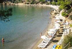 Alonissos Beaches - Located just 5 km northeast of Patitiri in Alonissos, Greece, Chrissi Milia Beach is considered the most beautiful beach on the island. This stunning beach boasts golden sand that shimmers in the sunlight and offers crystal-clear, turquoise waters perfect for swimming. Chrissi Milia also offers some water sports, sun beds, and umbrellas, making it one of the few organized beaches on the island. Additionally, visitors can enjoy a delicious meal at the charming tavern located on a hill overlooking the beach. For those looking to explore, there are rocky pools at the far end of the beach and refreshing pine trees providing shade. Don't miss the opportunity to visit Chrissi Milia Beach during your trip to Alonissos, Greece.