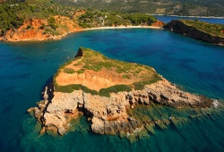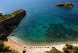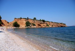 Alonissos Beaches - Kokinokastro Beach in Alonissos, Greece is a stunning sandy beach located just 7 km northeast of Patitiri. Named after the "red castle" that towers above it, Kokkinokastro is a white stone and pebble beach with crystal clear, deep blue waters. This beach is not just a beautiful location to relax, but it's also rich in history. You can explore the wall remains of Ikos, the ancient city, and see the earliest evidence of human life in the Aegean on the islet opposite the beach.