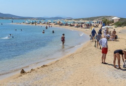 Antiparos Beaches - Agios Georgios Beach in Antiparos, Greece is a breathtaking and meticulously maintained coastal paradise located on the idyllic northeastern side of the serene Aegean Island. Its mesmerizing azure waters, caressing the velvety golden shores, create an enchanting haven of serenity and unspoiled aesthetics. Nestled amidst verdant foliage and embraced by rugged cliffs, Agios Georgios Beach beckons both sun worshippers and nature lovers in search of an unparalleled escape.