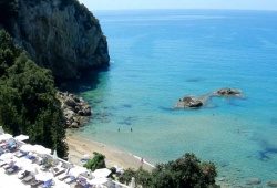 Corfu Beaches - Agios Gordios Beach in Corfu, Greece is a highly sought-after sandy beach destination. Named after the Saint Gordios Church, which sits at the center of the beach on the seashore, it's surrounded by picturesque gold-green olive trees, vines, and impressive rocks. This well-organized and clean beach boasts a shallow shoreline, perfect for swimming. It's an ideal location for summer relaxation with plenty of water sports available for adults and children to enjoy. Book your trip to Agios Gordios Beach in Corfu for an unforgettable summer getaway.