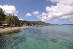 Corfu Beaches - Boukari Beach in Corfu, Greece is a serene fishing village situated just 26 kilometers away from the main town of Corfu. It offers a tranquil setting with its crystal-clear, shallow waters set against a lush green backdrop, making it perfect for families with children. You'll find limited facilities on the beach, with only a cantine serving snacks and drinks. However, as you explore further along Boukari Beach, you'll come across charming fish taverns in the village, known for serving the freshest catch for a truly enjoyable dining experience.