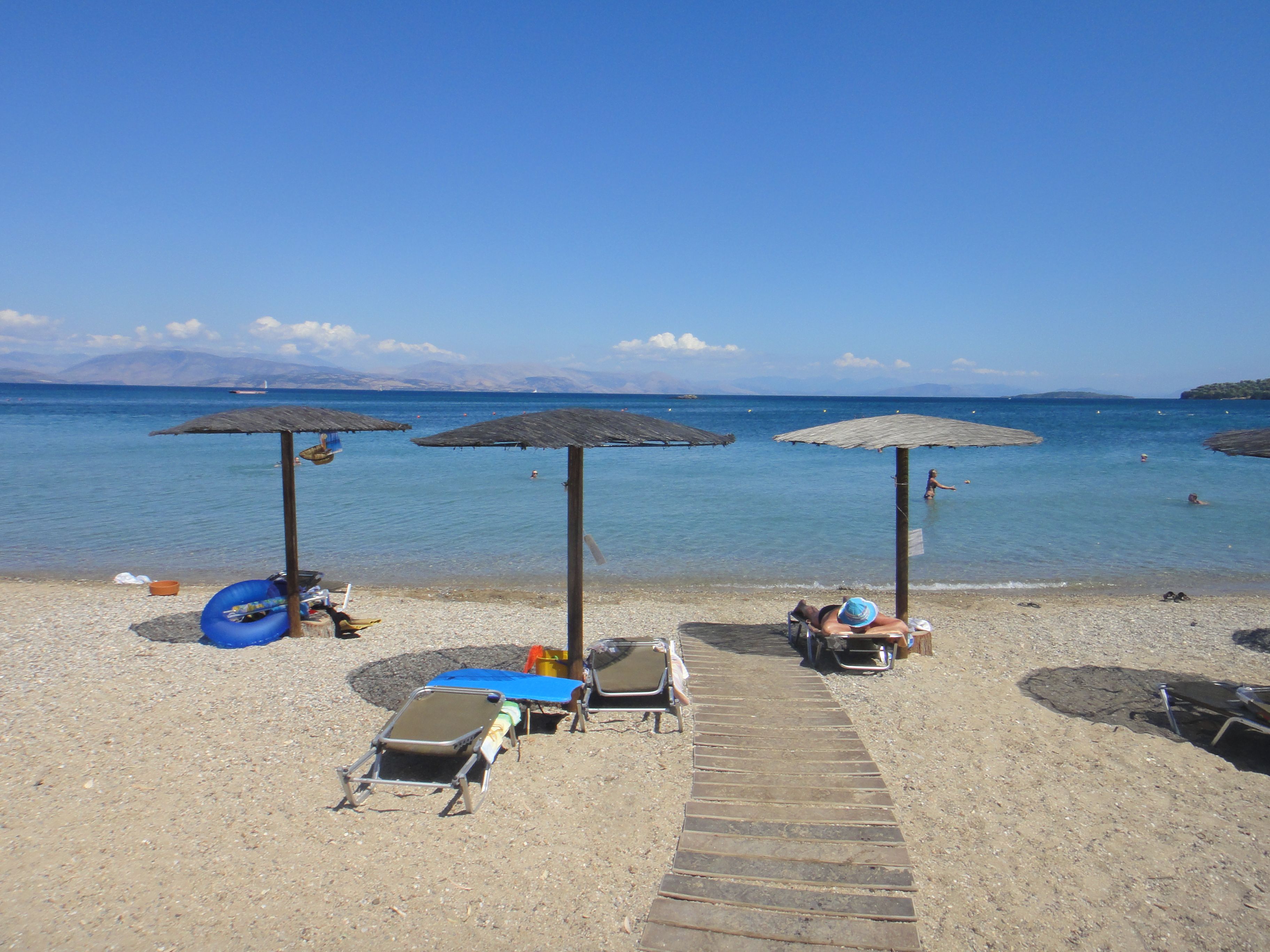 Corfu Beaches - Dassia Beach in Corfu, Greece is a must-visit for any tourist. This popular tourist resort is nestled between the charming villages of Gouvia and Ipsos in Corfu. With its long stretch of sand and pebbles, Dassia Beach is the perfect holiday destination for those seeking a friendly and cosmopolitan atmosphere. If you're looking for accommodation, there are several big hotels conveniently located along the beachfront, providing you with all the facilities you need. The beach is also lined with numerous trees that offer a refreshing shade from the sun. For an unforgettable experience, take a boat trip to the nearby beaches and enjoy the stunning scenery. From Dassia Beach, you can admire the breathtaking view of the Monastery of Pantokrator. Make sure to include Dassia Beach on your itinerary when visiting Corfu!