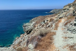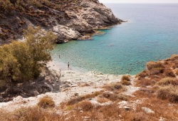 Folegandros Beaches - Ambeli Beach, located on the northwest side of Folegandros in Greece, is a picturesque pebbled beach boasting crystal-clear turquoise waters and rocky outcroppings. While secluded, visitors can access it via a path from the area of Agios Panteimonas at Ano Meria. Keep in mind that there are no facilities available, so it's best to bring your own supplies if you plan to visit Ambeli Beach in Folegandros.