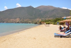 Laconia Beaches - Skoutari Beach in Gythio, Peloponnese is a stunning coastal destination that's just a short distance away from Gythio. With soft, sandy shores and clear, pristine waters, it's an ideal spot for swimming and sunbathing. You'll also find rocky areas where you can take a refreshing dip. Skoutari Beach boasts a great selection of eateries and bars, making it perfect for families on vacation. If you're exploring the Peloponnese region, make sure to set aside some time to unwind and soak up the sun at Skoutari Beach.