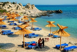 Halikidiki Beaches - Armenistis Beach in Halkidiki, Greece, is a top-rated camping destination for beach lovers. Boasting over a kilometer of pristine sand and crystal-clear shallow waters, it has rightfully earned its title as one of Greece's greatest beaches. With a coveted "Blue Flag" rating, Armenistis Beach offers ample space to spread out and relax without feeling crowded.