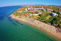 Halkidiki Beaches - Gerakini Beach in Halkidiki, Greece, is a must-visit destination for beach lovers. Located between the Kassandra and Sithonia peninsulas, Gerakini Beach boasts a stunning view of the southern disposition. With its yellow sand and excellent organization, this long beach has been a popular spot among tourists for many years. The recent addition of a 5-star hotel has made it even more appealing. When you visit Gerakini Beach, you'll have access to plenty of restaurants and entertainment options, making it the perfect place to relax and unwind.