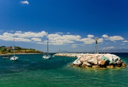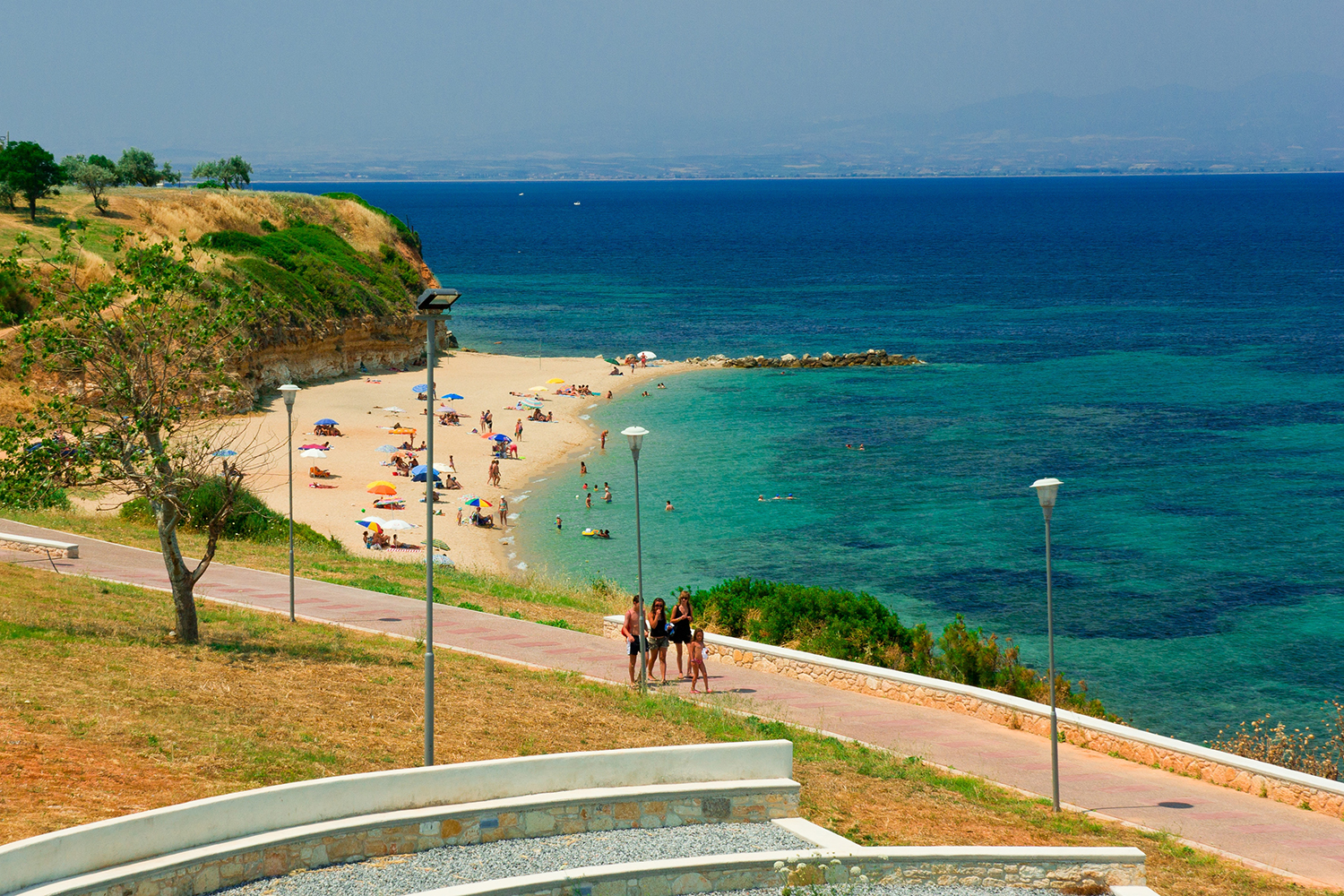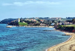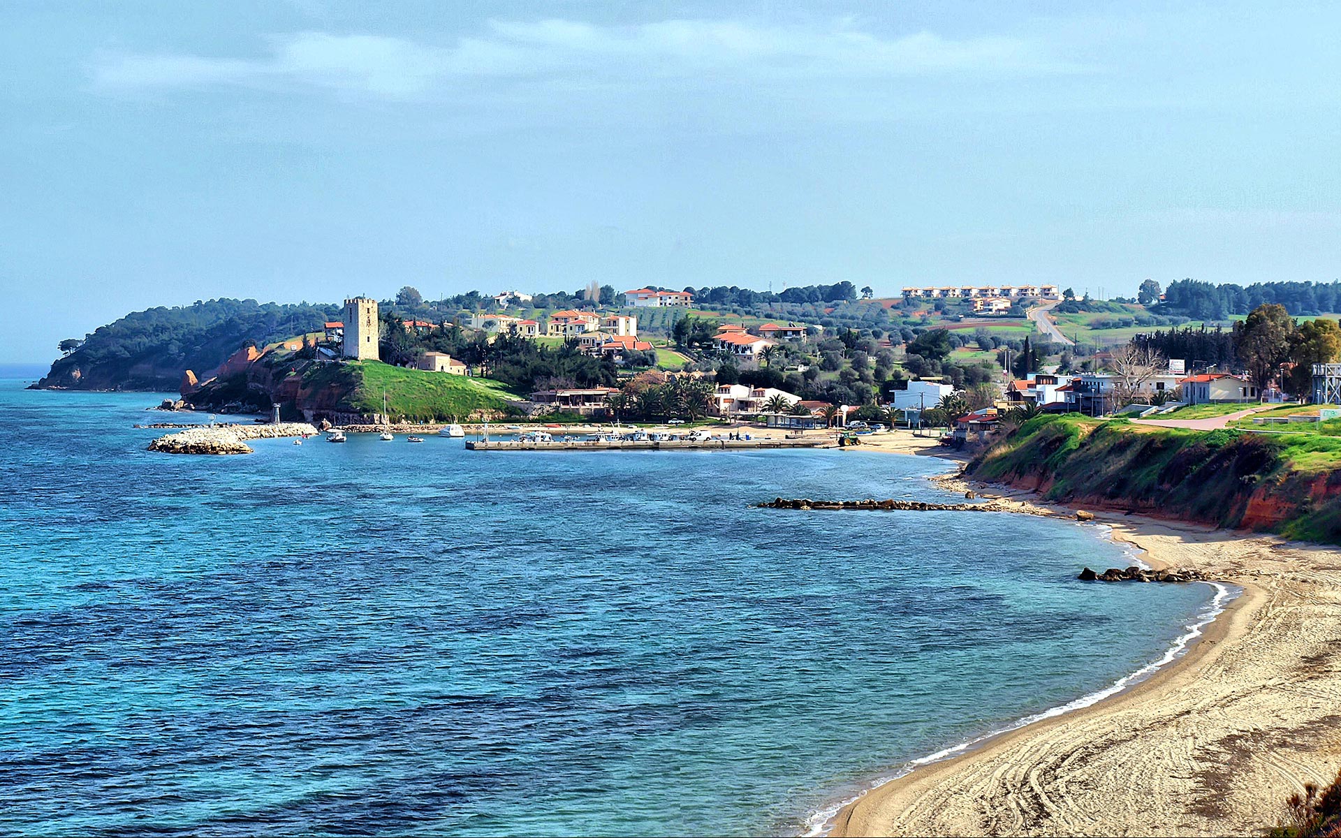 Halkidiki Beaches - Nea Fokea Beach in Halkidiki, Greece offers stunning scenery with crystal-clear turquoise waters and a view of the Byzantine Tower. This organized and family-friendly beach is located near Sani and boasts an array of restaurants and traditional taverns that offer the freshest Greek seafood. With numerous nearby accommodations and shops, Nea Fokea Beach is the perfect destination for families and friends seeking an unforgettable beach vacation.