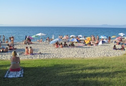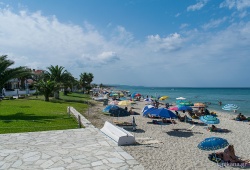 Halkidiki Beaches - Pefkohori Beach in Halkidiki, Greece is a stunning beach resort situated in the southern part of Kassandra. Its picturesque green surroundings and pristine white sand beach create the perfect setting for families and friends to enjoy a refreshing swim. This top-rated beach is well-equipped with a variety of accommodations, dining options, and is a popular destination for diving enthusiasts. Come experience the beauty of Pefkohori Beach in Halkidiki, Greece today!