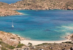 Ios Beaches - Tris Klisies Beach in Ios, Greece is a stunning beach situated on the southern part of the island. If you're looking for a secluded spot, this beach is perfect for you. It's also a popular destination for nudists. To get to Tris Klisies Beach, you'll need to hike along a small path for approximately 10-15 minutes after leaving your car. Once you arrive, you'll be greeted by golden sand and crystal-clear blue waters, offering a unique diving experience and the opportunity to relax while taking in an extraordinary view of the surrounding area. In addition, the rocky coastline bordering the beach is an excellent spot for boat exploration.
