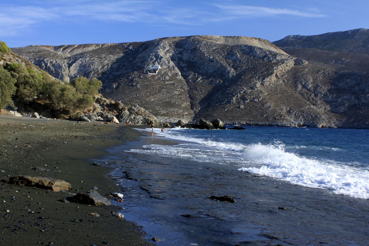 Kalymnos Beaches - If you're searching for breathtaking beaches in Kalymnos, Platis Yialos is a must-visit destination. Nestled near the charming village of Parnomos, this stunning beach boasts soft black sand and crystal-clear, turquoise waters. It's also the perfect spot to catch a stunning sunset over the Aegean Sea. Need to grab a bite or some supplies? No problem - there's a convenient minimarket and restaurant located nearby. To reach Platis Yialos, simply hop on the local bus from Pothia.