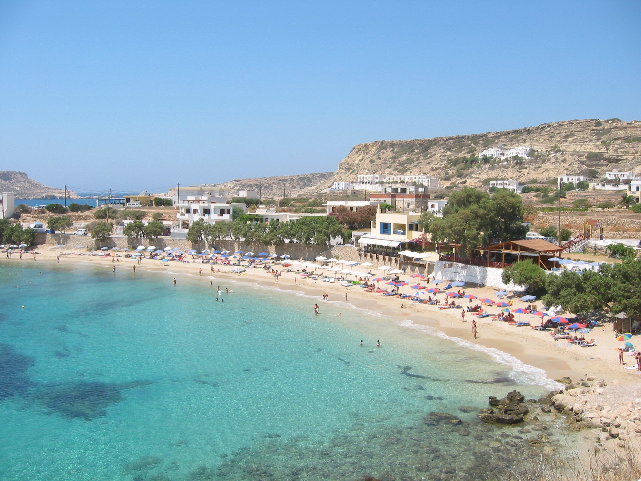 Karpathos Beaches - Lefkos Beach in Karpathos, Greece is a stunning beach destination located just 31 kilometers northwest of Pigadia, the island's capital, and a mere 17 kilometers from Arkasa village. With three pristine coves boasting white sandy beaches and crystal-clear waters, Lefkos Beach is a true paradise for travelers seeking a tranquil and picturesque escape. Nestled amidst lush pine trees, the beach offers ample shade and natural beauty. Visitors can also find a variety of accommodations and delectable fish taverns in close proximity, making Lefkos Beach the perfect destination for a serene and unforgettable vacation in Greece.