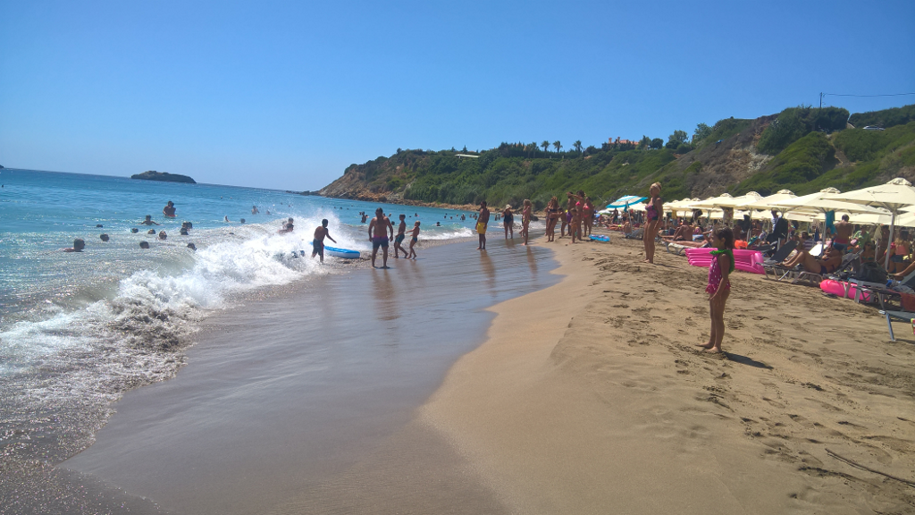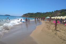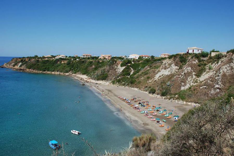 Kefalonia Beaches - Ai Helis Beach in Kefalonia, Greece is a picturesque destination located in the southwest part of the island, nestled within the charming village of Svoronata. This stunning beach boasts of soft, golden sand and crystal-clear, shallow waters, providing an ideal setting for families with young children. The towering rocks and lush greenery that surround the beach add to the scenic beauty of the place, creating a mesmerizing atmosphere. Visitors can relax on sunbeds or indulge in snacks and refreshments from the snack bar. For those who love beach volleyball, Ai Helis Beach offers two volleyball courts. The beach also boasts of a spacious parking lot, ensuring hassle-free access for visitors. Plan your visit to Ai Helis Beach in Kefalonia, Greece to experience its natural charm and beauty.