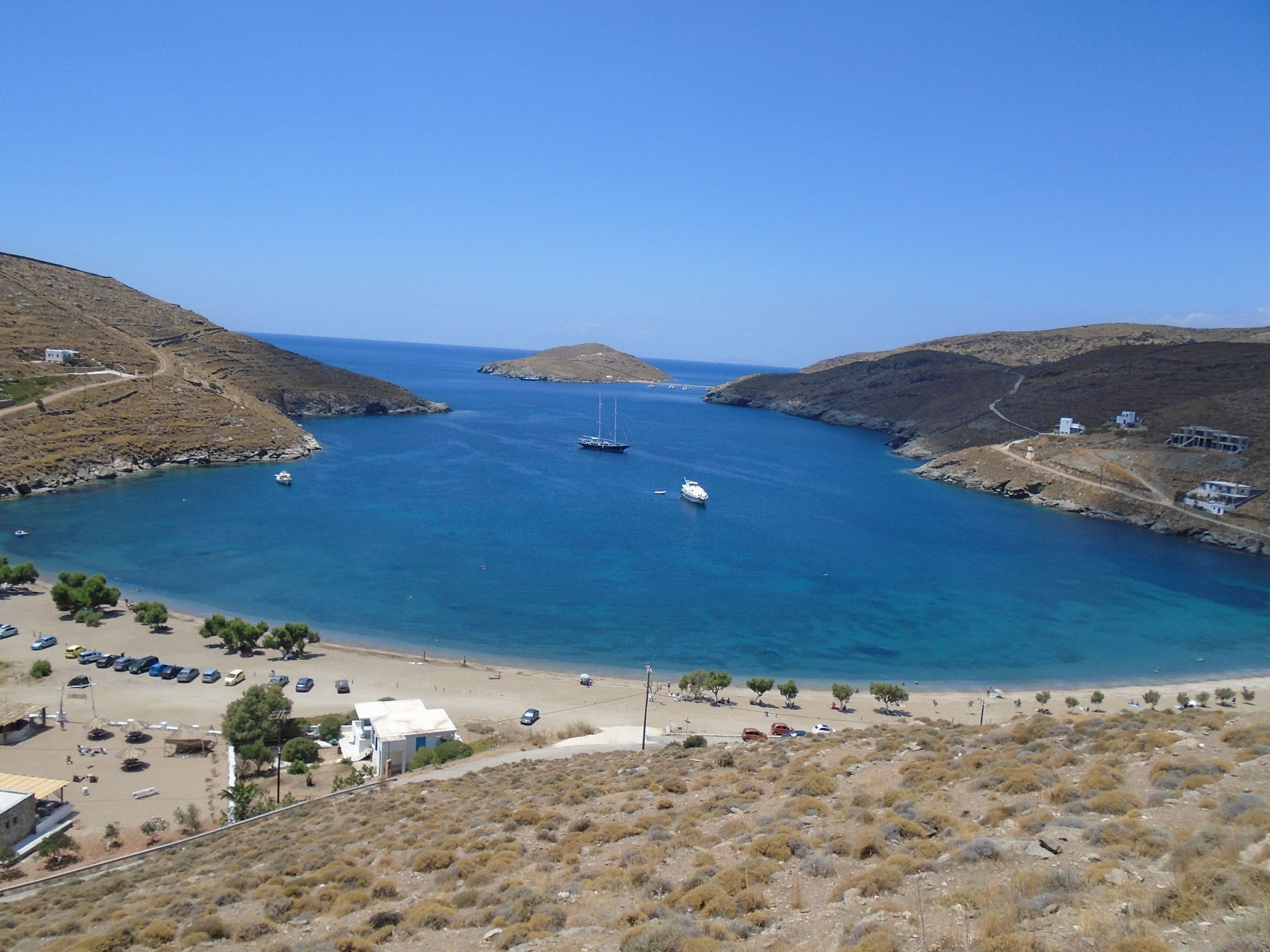Kythnos Beaches - Apokrousi Beach in Kythnos, Greece is a stunning sandy beach, complete with crystal clear waters and natural tree shade. Situated just 3km from Messaria, this idyllic spot offers a peaceful escape from the hustle and bustle of everyday life. While not extensively organized, visitors can enjoy nourishment at the on-site tavern and beach bar. For those without a car, regular bus services connect Messiria to Apokrousi Beach, making it an accessible getaway spot.