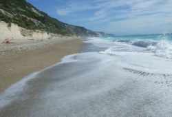 Lefkada Beaches - Gialos Beach in Lefkada, Greece is a stunning and lengthy stretch of sand located 35km southwest of the main town. Unlike other popular beaches, Gialos is less crowded but still offers all the amenities visitors need, including sunbeds and umbrellas. You can even find isolated spots perfect for swimming and sunbathing. Access to Gialos Beach is through the charming village of Athani, offering convenient parking and nearby taverns and cafes. Experience the beauty of Gialos Beach in Lefkada, Greece today.