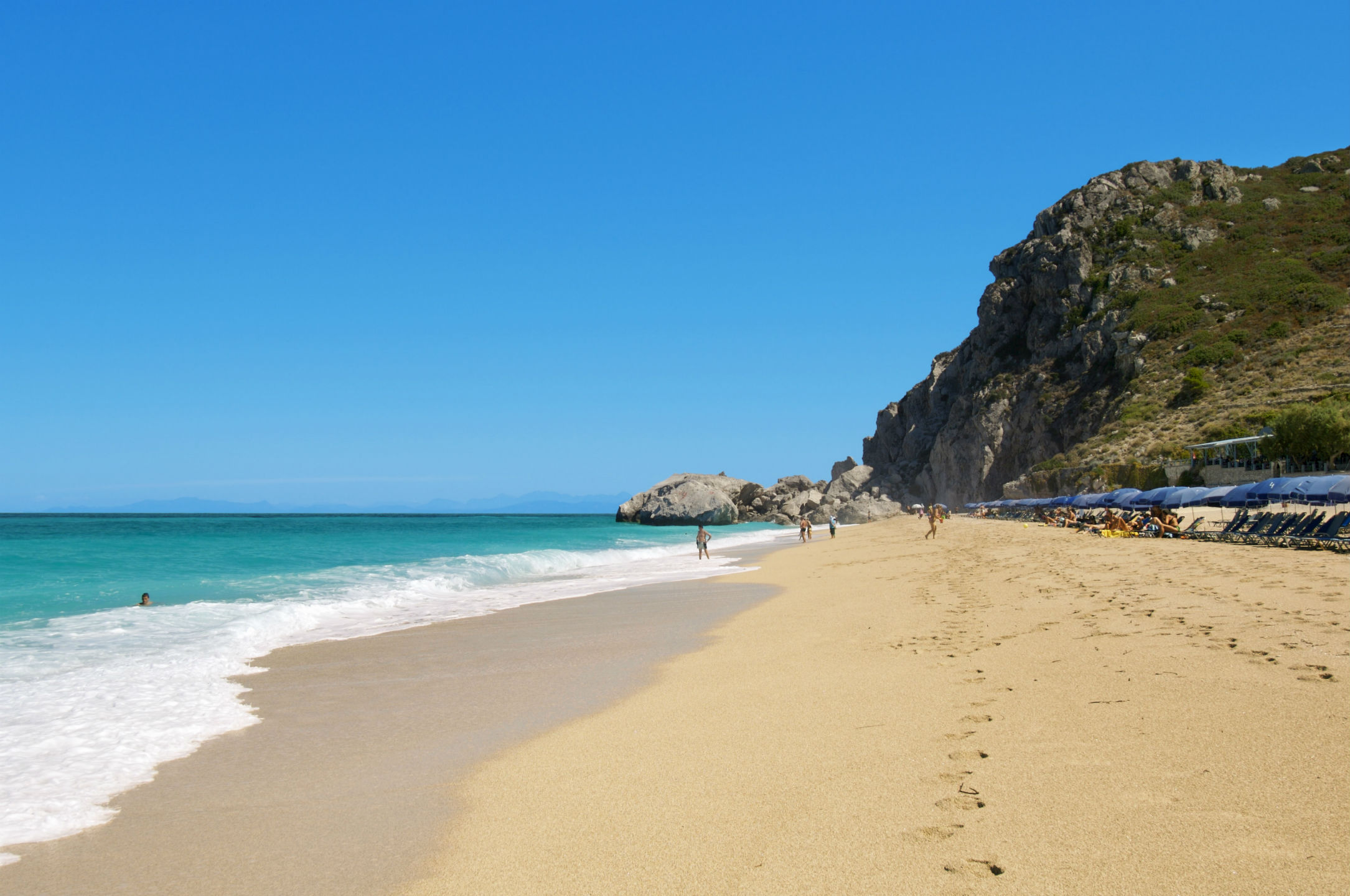 Lefkada Beaches - Kathisma Beach in Lefkada, Greece, is an exotic and breathtaking destination situated just 15 kilometers southeast of the main town and near the village of Agios Nikitas. This stunning beach boasts crystal-clear, shimmering blue waters perfect for swimming and sunbathing. Although it is ideal for young crowds, all visitors will appreciate the stunning views of the beach. Enjoy the convenience of sunbeds and umbrellas, as well as water facilities and sky parachutes that are available for use at this remarkable location. Make sure to add a visit to Kathisma Beach in Lefkada, Greece, to your must-see list.
