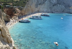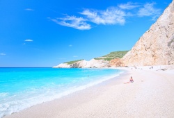 Lefkada Beaches - Located 45 kilometers southwest of Lefkada's capital and near Athani village, Porto Katsiki is one of the most renowned beaches in Greece. The area is surrounded by stunning white cliffs and lush vegetation, providing a breathtaking natural backdrop. The beach features beautiful exotic blue waters, offering a glimpse of paradise in the Ionian. While sunbeds and umbrellas can be found on the beach, the cliffs also provide picturesque spots of shade. Visitors to Porto Katsiki in Lefkada can also enjoy a bar and canteen for refreshments, as well as a convenient car park.