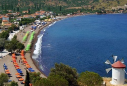 Lesvos Beaches - Anaxos Beach in Lesvos, Greece is a stunning sandy stretch situated on the island's west side. It's a sought-after destination that offers a range of amenities such as sunbeds and umbrellas, water sports facilities, beach bars, and taverns. Whether you're a couple, group, or family, this beach is perfect for spending a relaxing day in Greece. Don't miss out on the chance to experience Anaxos Beach in Lesvos, Greece!