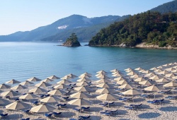 Thassos Beaches - Makriammos Beach in Thassos, Greece is a stunning sandy beach boasting crystal-clear waters. Situated in close proximity to Limenas, the capital of Thassos, it's a popular destination for visitors seeking a picturesque escape. Makriammos Beach offers an array of amenities, including accommodation options, sunbeds, umbrellas, water sports activities, and restaurants. Experience the beauty of Makriammos Beach in Thassos, Greece today.