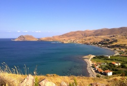 Limnos Beaches - Agios Ioannis Beach in Limnos, Greece is a breathtakingly beautiful stretch of sand on the island's north side. The beach's unique charm is enhanced by the imposing rocks that surround it. Due to its proximity to Myrina Town, Agios Ioannis beach is a popular destination and can get quite crowded. However, visitors need not worry about lodging or dining options as there are several accommodations and taverns serving delicious seafood located nearby. Experience the stunning Agios Ioannis Beach in Limnos, Greece and marvel at its natural beauty.