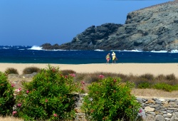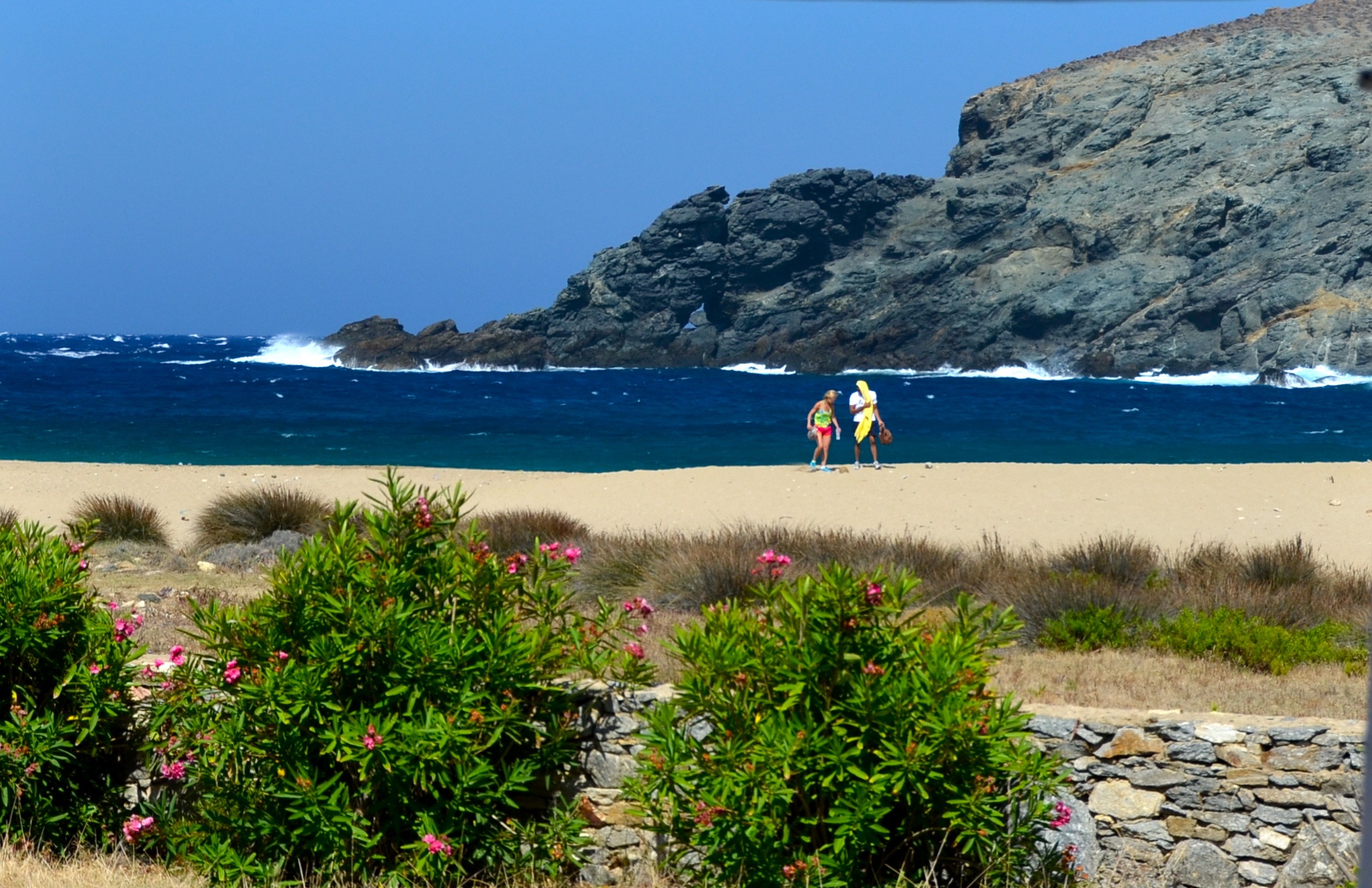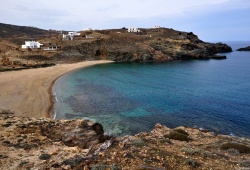 Mykonos Beaches - Fokos Beach in Mykonos, Greece is a serene and secluded spot located on the northern side of the island. Even during peak season, Fokos remains calm due to its distance from the southern beaches. The sandy beach is free from tourist facilities such as umbrellas and sunbeds, providing an authentic beach experience. The only tavern in the area is traditional and offers delicious dishes. To reach Fokos, visitors must take a car and turn in Ano Mera, just after the Marathi Lake, which is a vital source of fresh water for the island. Experience the tranquil beauty of Fokos Beach in Mykonos, Greece today.
