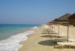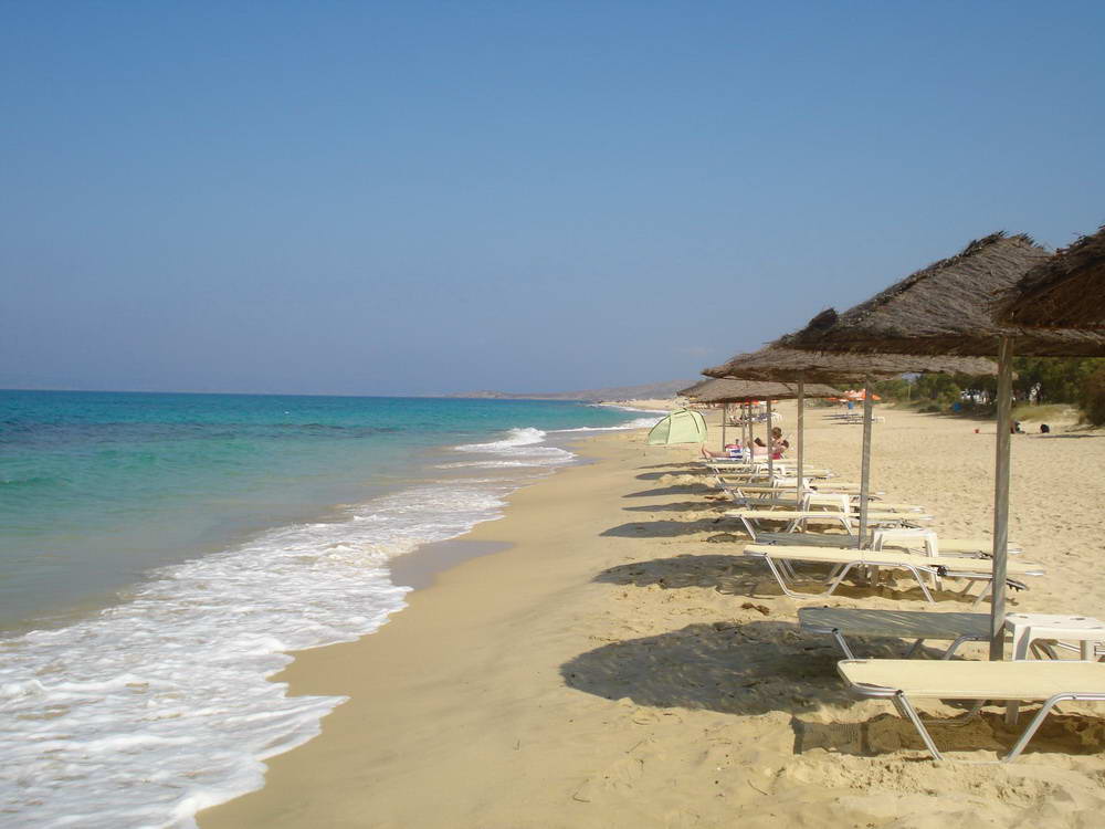 Naxos Beaches - Plaka Beach in Naxos, Greece is a stunning destination that must be explored. This serene and never-ending sandy beach boasts crystal-clear waters and in some areas, large flat stones. While the beginning of the beach offers sun beds and umbrellas, the majority of the beach remains untouched and retains its natural beauty. You'll find a handful of hotels, restaurants, and cafes situated behind the sandy dunes that border this beautiful beach. Don't miss your chance to experience the unspoiled tranquility of Plaka Beach in Naxos, Greece.