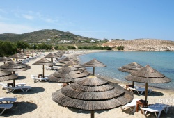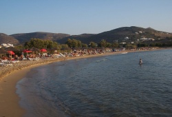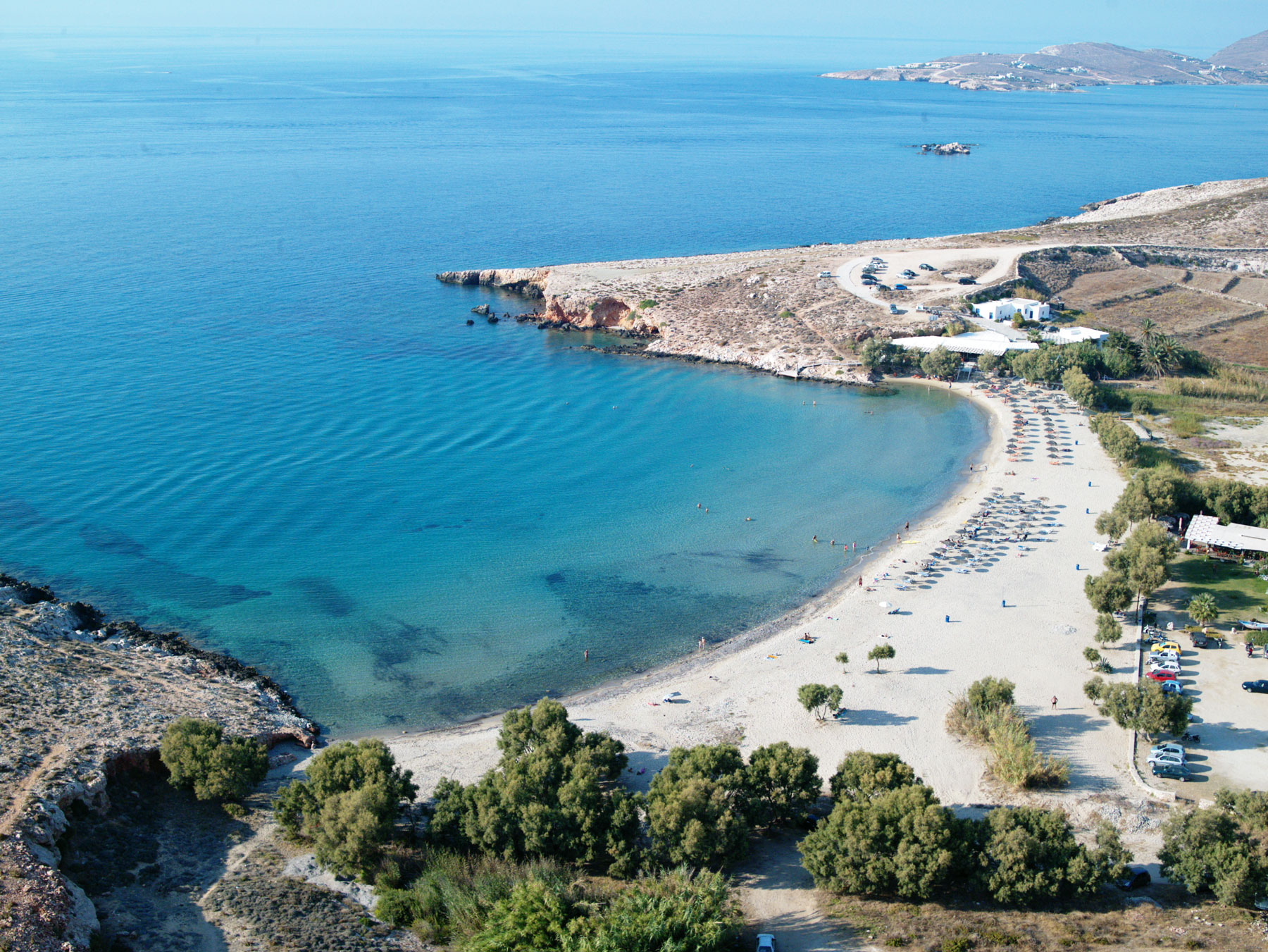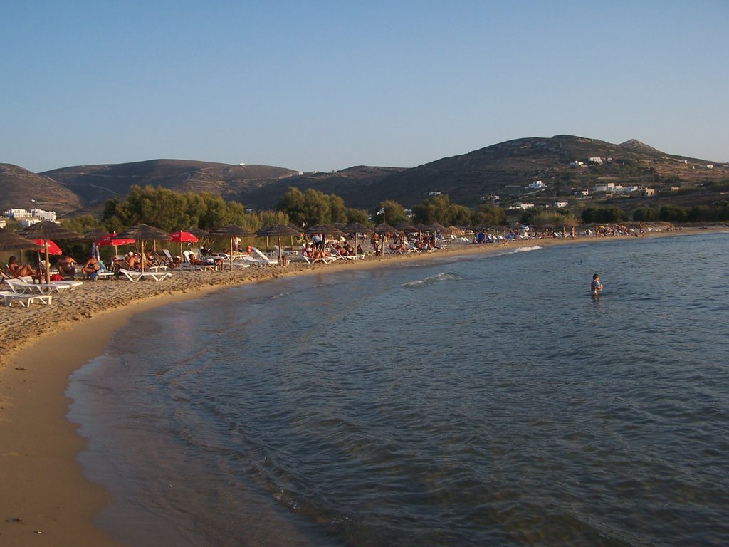 Paros Beaches - Parasporos Beach in Paros, Greece is a stunning destination located just south of the capital city, Parikia. With its emerald waters and golden sand, this large beach is a popular spot for locals and visitors alike. Despite its popularity, the beach can get crowded due to its location near a campsite. Nevertheless, a visit to Parasporos Beach is worth it, especially during the summer when beach bars host parties that last all night long. Accessing the beach is easy with a local bus stop nearby or via private car on a well-maintained, asphalted road. Signposts are visible from the town, and there are two turnings that lead to parking areas. Opt for the first turning to park above the beach or the second turning for a car park on the same level. Enjoy a beautiful day at Parasporos Beach in Paros, Greece.