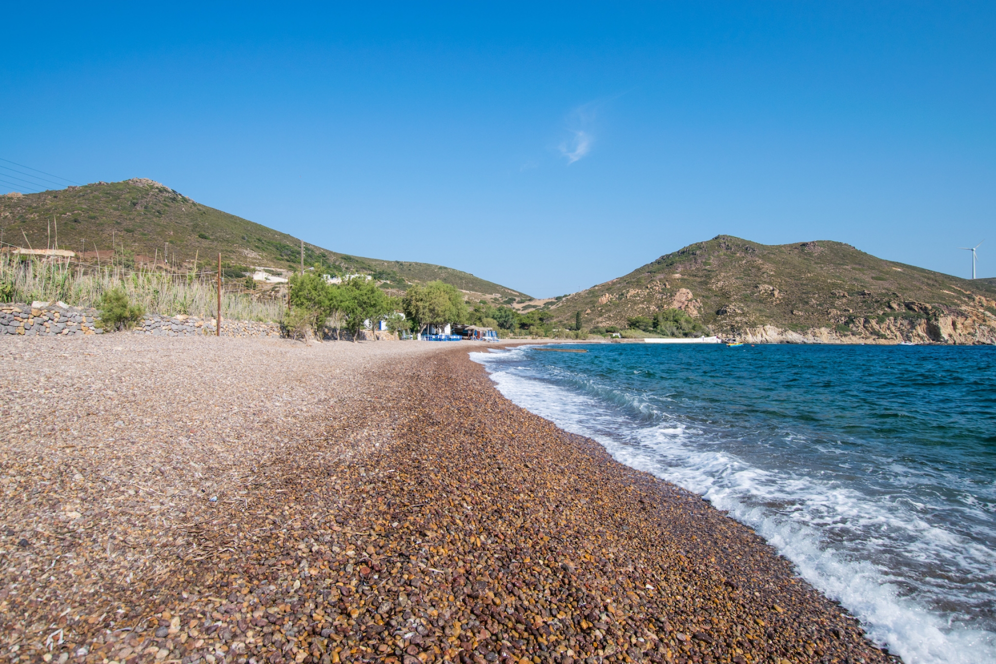 Patmos Beaches - Lambi Beach in Patmos, Greece is a hidden gem situated on the serene north coast. Although unorganized, this secluded beach is a must-visit for those seeking a peaceful escape. Visitors can enjoy authentic local cuisine, including fresh fish and delicacies, at the charming tavern located on the beach. Whether arriving by private vehicle, boat from Skala, or on foot from Kambos (a 25-minute walk), Lambi Beach promises a tranquil and unforgettable experience. Don't miss out on the chance to discover this stunning Patmos destination.