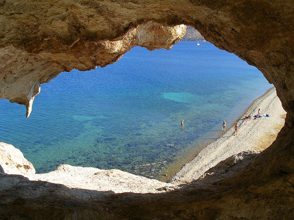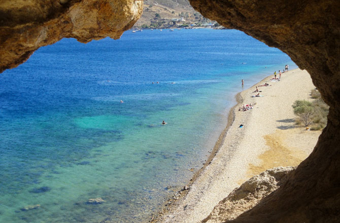 Patmos Beaches - Petra Beach, also known as Kallikatsou, is a stunning organized beach located on the southern coast of Patmos, Greece. This beach boasts a canteen, umbrellas, and sunbeds for visitors to enjoy. Made up of rocky terrain, Petra Beach offers a picturesque view of the Aegean Sea. Petra Beach is in close proximity to Plaki Beach, which is an excellent spot for nudists. Plaki Beach is a sandy beach adorned with small pebbles and a solitary tree. At the end of Plaki Beach, a chain of small coves and beaches begins, making it a must-visit destination for beach lovers. Experience the beauty of Petra Beach in Patmos, Greece today.