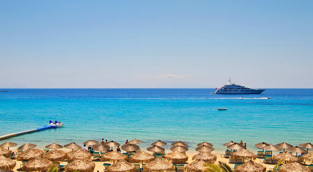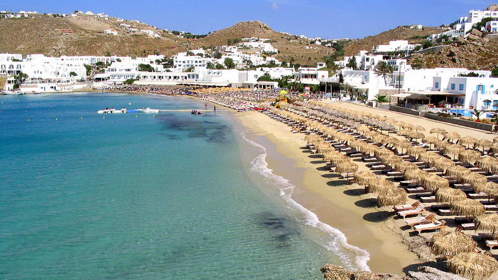 Mykonos Beaches - Platis Gialos Beach in Mykonos, Greece is a top destination for beach-goers. With its golden sand and crystal-clear turquoise waters, it's no wonder thousands flock here every summer. This fully organized beach boasts numerous hotels and restaurants, making it easy to access and enjoy. Relax on sun beds or get in on the action with water sports facilities available. You can even grab a drink and take in the view from seated loungers. Platis Gialos is conveniently accessible via local buses departing from the capital every half hour. For those looking to explore other beaches, regular taxi-boats depart for Paranga, Agrari, Elia, Paradise, and Super Paradise from Platis Gialos.