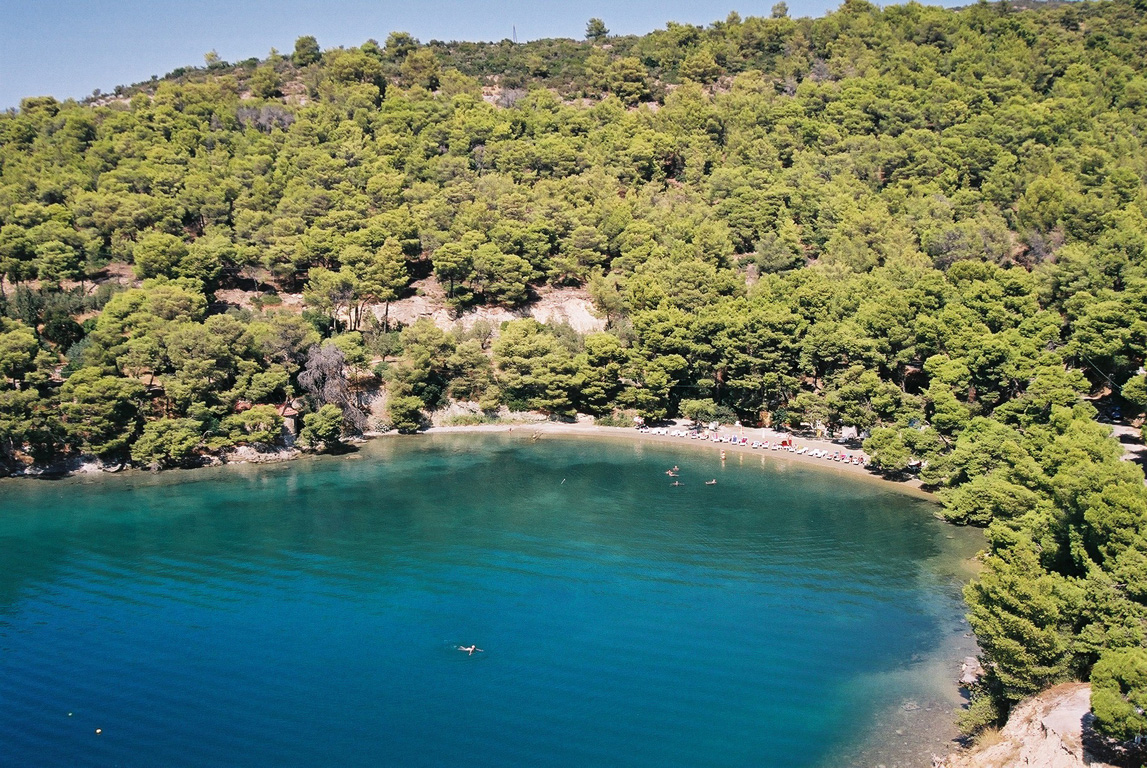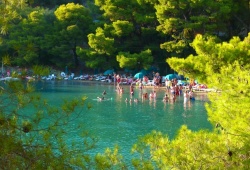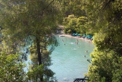 Poros Beaches - Love Bay in Poros, Greece is a breathtaking destination that is not to be missed. The picturesque pebbled beach boasts crystal-clear turquoise waters, all set amidst stunning lush vegetation and pine trees providing natural shade. Thanks to its excellent organization, visitors can relax in comfort on one of the many available sunbeds and umbrellas. Plus, its convenient location near Poros Town makes it easily accessible by bus. Plan your visit to Love Bay in Poros, Greece today!