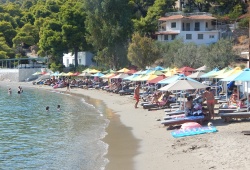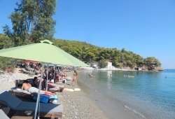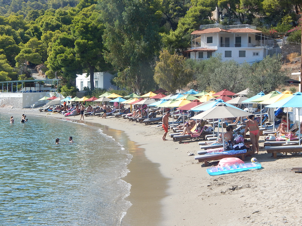 Poros Beaches - Monastiri Beach in Poros, Greece boasts crystal-clear waters and sandy shores, nestled amidst a picturesque backdrop of lush pine trees, providing ample shade from the sun. Enjoy the convenience of well-organised facilities, including sunbeds and umbrellas, as well as thrilling water sports and diving opportunities. With a strategic location just 5km from Poros Town, Monastiri Beach is easily accessible by car or bus, making it the perfect destination for your next Greek island adventure.