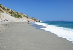 Rethymnon Beaches - Ligres Beach in Rethymnon, Crete is a stunning destination located at the foot of Mount Siderotas, 51km south of Rethymno and just 7km south of the charming village of Kerames. Its vast expanse of sand borders the deep blue sea, offering visitors an unforgettable experience. Unlike other beaches, Ligres has stayed largely untouched by tourism, allowing it to retain its natural beauty and charm. Though unorganized, visitors can find taverns and a few rooms on the west side of the beach, accessible by rental car via a rough asphalt road. And for those seeking something truly special, the west end boasts a breathtaking waterfall that cascades all year round into the sea. Make your next vacation unforgettable by visiting Ligres Beach in Rethymnon, Crete.