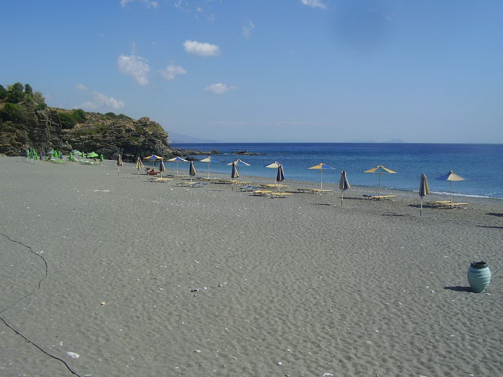 Rethymnon Beaches - Rodakino Beach is located in the traditional village of Rodakino, just 45 kilometres southeast of Rethymnon, Crete. Nestled at the exit of a canyon that descends from Mount Kryoneritis, this serene beach is a hidden gem situated a few miles west of Plakias and east of Frangokastello. The village is spread out on both sides of the gorge, offering stunning views of the deep blue Libyan Sea. It is said that the village was named after a peach tree that thrived in this dry climate.