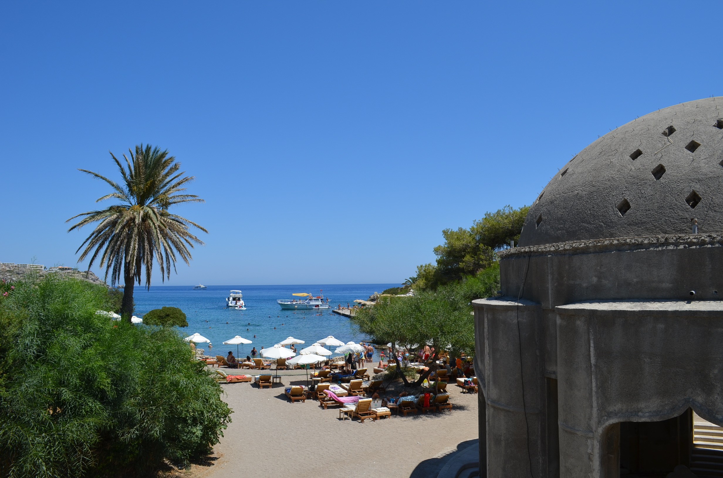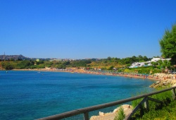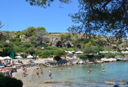 Rhodes Beaches - Kalithea Beach in Rhodes, Greece is a popular spot for locals and visitors alike. This picturesque beach boasts hot medicinal springs, constructed by the Italians (though now defunct), and is located just 8 km south of Rhodes Town. The stunning scenery, complete with swaying palm and pine trees, perfectly complements the crystal-clear waters of the sea. Don't miss out on the chance to experience this idyllic location. Access to Kalithea Beach is easy from the main town of Rhodes.