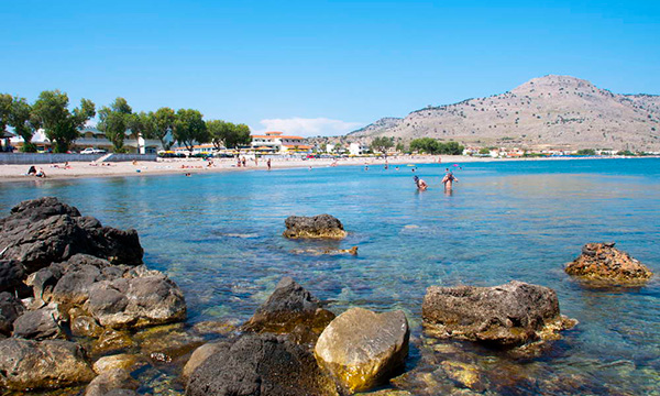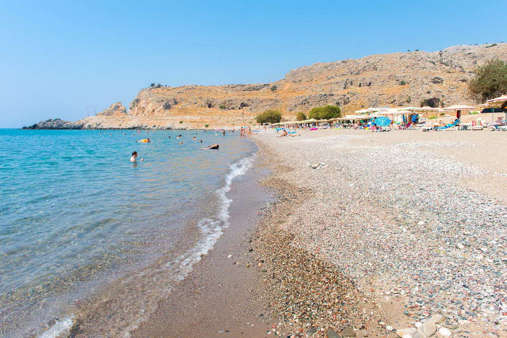 Rhodes Beaches - Lardos Beach in Rhodes, Greece is a stunning destination just 65 km from Rhodes Town and 6 km from Kiotari village. Featuring a picturesque combination of sand, pebbles, and crystal-clear emerald waters, Lardos Beach offers breathtaking views of the surrounding hills and greenery. In particular, the lush tamarisks provide natural freshness and ample shade. Moreover, visitors can choose from a variety of accommodation options, including hotels, studios, and rental rooms, making Lardos an ideal vacation spot. Don't miss the chance to experience the beauty and tranquility of Lardos Beach in Rhodes, Greece!