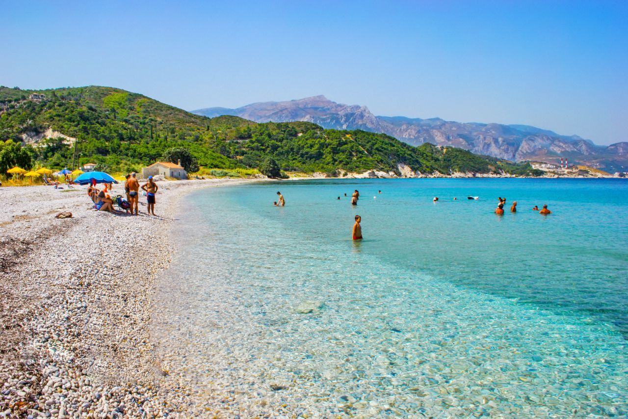 Samos Beaches - Kedros Beach in Samos, Greece, is a picturesque and serene destination that any beach lover must visit. With its long and sandy shoreline, crystal-clear turquoise waters, and pebble-strewn coast, Kedros Beach offers an unparalleled experience for those seeking privacy and relaxation. The beach is located in a secluded area of Samos, surrounded by breathtaking scenery that is sure to leave you in awe. To make the most of your visit, it is recommended that you bring your own supplies and immerse yourself in the beauty of Kedros Beach in Samos, Greece.