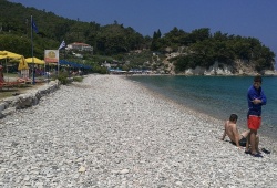 Samos Beaches - Discover the stunning Tsamadou Beach in Samos, Greece. This picturesque beach boasts a long stretch of sandy shore, interspersed with delightful pebbles and clear turquoise waters. Located on the island's north side, Tsamadou Beach is a must-visit for nature lovers and beach-goers alike. Relax in comfort with provided sunbeds and umbrellas, while nearby taverns and bars offer refreshments and accommodations for rent. Experience the perfect blend of natural beauty and modern convenience at Tsamadou Beach in Samos, Greece.