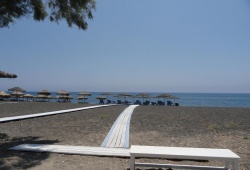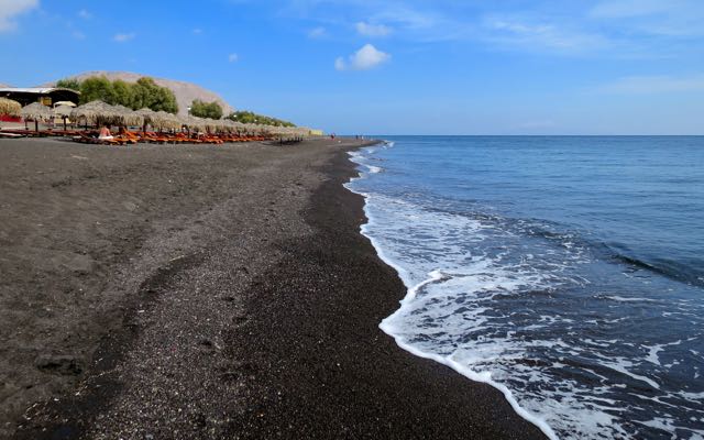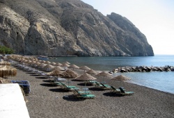 Santorini Beaches - Perivolos Beach in Santorini, Greece is a stunning location just 3 km away from Perissa. Located on the southern end of the island, this picturesque beach boasts sparkling azure blue waters and a serene atmosphere. If you're looking for fresh fish and local delicacies, numerous taverns, pubs, and restaurants line the beachfront. Perivolos Beach is easily accessible by local buses and cabs if you don't have your own vehicle. For those who prefer to walk, a path through the countryside is also an option. Perivolos is an extension of the beaches of Perissa and Agios Georgios, and is one of the most well-organized beaches on Santorini. It offers a plethora of exciting water sports facilities such as windsurfing, scuba diving, and jet skiing. Discover the beauty of Perivolos Beach in Santorini, Greece today.