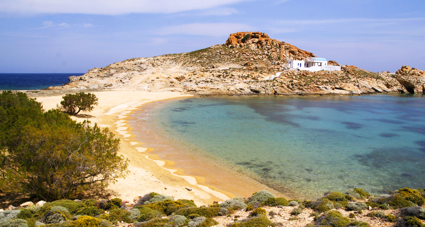 Serifos Beaches - Agios Sostis Beach in Serifos, Greece is a picture-perfect sandy beach situated on the serene east side of the island. If you crave seclusion and tranquility, this idyllic beach is just what you need. Take in the breathtaking views from the Agios Sostis church perched on the cliff while you unwind on the soft sand.