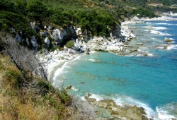 Skiathos Beaches - Kalamaki Beach in Skiathos, Greece boasts gentle bays and soft sands. Its crystal clear waters are the best part of the beach, offering a breathtaking view of the azure blue sea in Skiathos. A few villas and hotels in the area provide classy accommodations that complement the stunning scenery. For a surreal and fantastic experience, visit Kalamaki Beach on a moonlit summer night. Traffic is minimal in the area, as only a small part of the road is concreted, primarily used by the villas, ensuring a peaceful environment. Exploring the small coves at the end of goat paths can be a remarkable adventure, and despite being the height of August, the area can still be sparsely populated. Kalamaki Beach can be challenging to reach, with no buses servicing the area. However, visitors can utilize the water bus from Kanapitsa Beach to get to the beach.