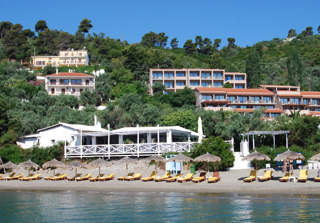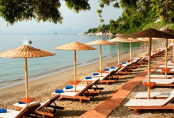 Skiathos Beaches - Vassilias Beach in Skiathos, Greece is a stunning destination for beach lovers. Surrounded by pine-clad hills, this picturesque beach is perfect for sunbathing. In addition to its natural beauty, Vassilias Beach boasts unmatched coastal views that will take your breath away. Located just 6 km from the town of Skiathos, this beach is easily accessible by local bus or taxi. Plus, the airport is only 8 km away, making it a convenient location for travelers. Don't miss out on the opportunity to experience the beauty of Vassilias Beach in Skiathos, Greece.