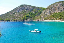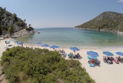 Skopelos Beaches - Nestled in a stunning cove just a stone's throw away from Agnondas in Skopelos, Limnonari Beach is a charming and secluded sandy beach that can be accessed via a picturesque seaside trail or by boat. The emerald waters of Limnonari Beach are complemented by the lush greenery of the surrounding pine trees. Whether you want to relax on sun beds, seek shade under umbrellas, or indulge in delicious seaside dining at the waterside tavern, Limnonari Beach has something for everyone. Don't miss out on the tranquility and natural beauty of Limnonari Beach in Skopelos, Greece.