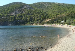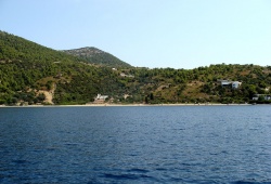 Skyros Beaches - Pefkos Beach in Skyros, Greece, is a breathtaking destination located just 10 kilometres west of Chora. This hidden gem is nestled near Atsitsa village and boasts a vibrant green landscape that frames the serene coast. Although not organized, Pefkos Beach is perfect for those looking for a secluded getaway. It is recommended to bring your own supplies since there are no facilities nearby. Accessing the beach requires a private car or motorcycle, and be aware that the road can be rough in some areas. If you're seeking more beachfront adventures, don't miss out on the nearby Agios Fokas Beach.