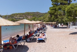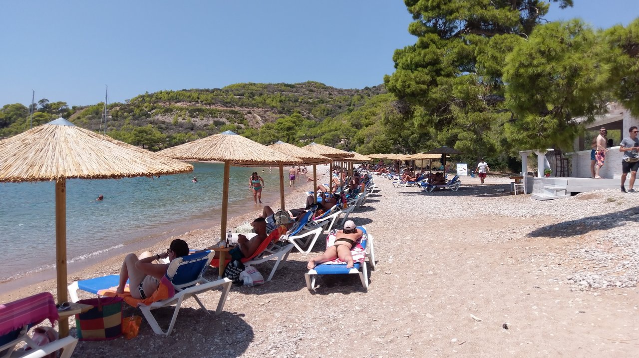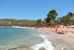 Spetses Beaches - Discover the pristine Agia Paraskevi Beach in Spetses, Greece - a stunning, expansive shoreline that boasts crystal-clear waters and powdery soft sand. This idyllic beach is fully equipped with sunbeds, umbrellas, and exciting water sport activities. Excursion boats are the preferred mode of transportation, offering convenient and easy access to this breathtaking destination. Explore Agia Paraskevi Beach and experience the epitome of relaxation and adventure amidst the beauty of Spetses.